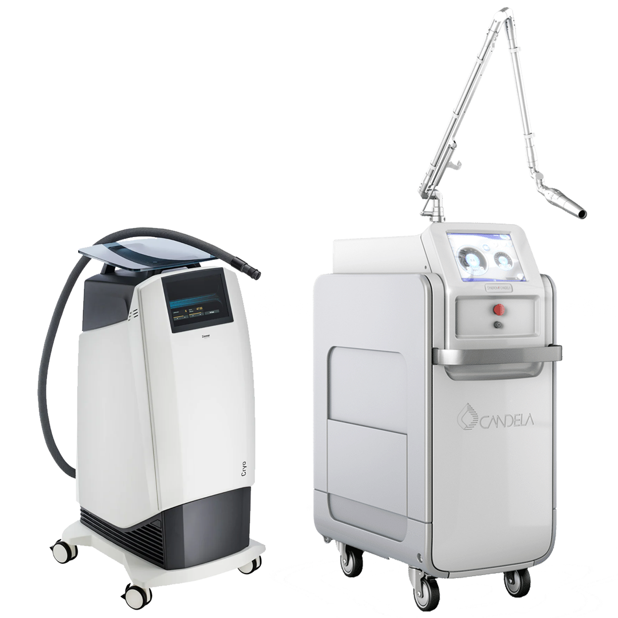 With our next-gen Candela Picoway Laser & Zimmer Cryo devices, tattoo removal is no longer super stressful. Though this isn't a discomfort-free experience - it is a far-cry from the experience your mom told you about when she warned you about getting your first tattoo. Most of our customers describe the laser as feeling like getting a light slap from a rubber band.